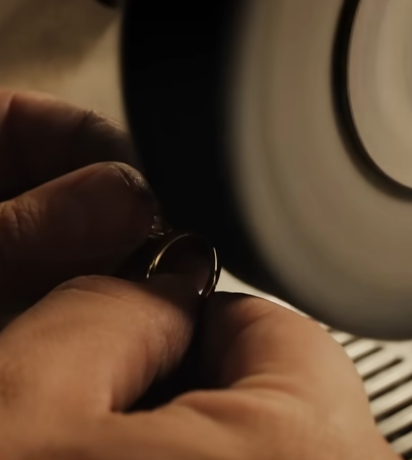 Sobald die Rohform vorliegt, beginnt die Feinarbeit. Mit speziellen Polierscheiben und Poliermitteln wird jede Oberfläche – sichtbar oder verborgen – sorgfältig geglättet, bis das Stück in einem brillanten, spiegelähnlichen Glanz erstrahlt. Besonders sensible Bereiche wie Krappen und Fassungen werden behutsam bearbeitet, um ihre Schönheit zu betonen, ohne die Stabilität zu beeinträchtigen.