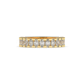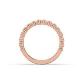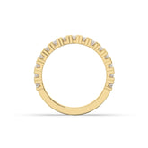 Sophisticated and bold, this Basket-Set half Eternity Ring features a row of sparkling stones set in an open basket setting that allows light to flow through from every angle. Available in yellow, rose, or white gold, it’s an eye-catching choice for a wedding band, anniversary ring, or statement piece.