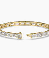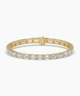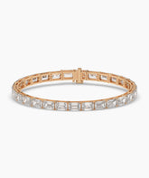 The tennis bracelet is a timeless jewelry classic, defined by its elegant row of perfectly aligned stones. Featuring white diamonds in the sophisticated emerald cut, this bracelet combines clean lines with dazzling brilliance. The step-cut facets of the emerald shape create a refined, mirror-like sparkle that emphasizes clarity and elegance over fire. A symbol of sophistication and enduring beauty, the emerald-cut diamond tennis bracelet is perfect for daily luxury or marking life’s most important milestones.