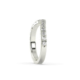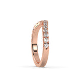 Modern and versatile, this Chevron Eternity Ring features a graceful V-shaped design accented with sparkling stones along the band. Available in yellow, rose, or white gold, it is perfect for stacking, pairing with an engagement ring, or wearing as a delicate statement piece on its own.