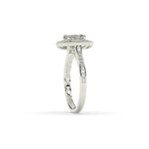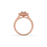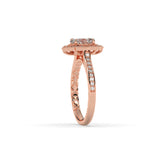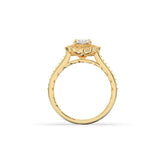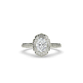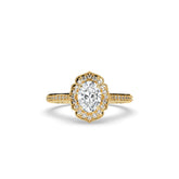 This vintage-inspired Oval Halo Ring features a delicate floral halo that enhances the brilliance of the oval center stone. The pavé-set band adds a refined sparkle, creating a timeless and romantic look. Available in yellow, rose, or white gold.