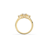 Timeless elegance at its finest – this three-stone engagement ring features a brilliant round-cut lab-grown diamond at the center, flanked by two perfectly matched side stones. The warm yellow gold band enhances the sparkle, creating a design that represents your past, present, and future together. A forever-classic choice for the romantics at heart.