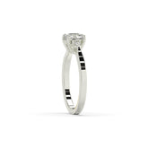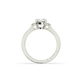 Delicate and graceful, this three-stone engagement ring captures the essence of refined romance. The brilliant round lab-grown diamond at the center is perfectly balanced by two petite side stones, creating a harmonious sparkle across the band. The sleek white gold setting enhances the brightness and gives this design a modern yet timeless aesthetic. Ideal for someone who appreciates understated elegance with a touch of brilliance.