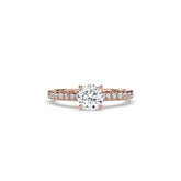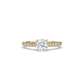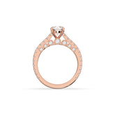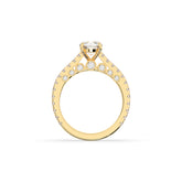 Classic meets sparkle: this Pavé Solitaire Ring pairs a brilliant round center stone with a diamond-studded band for extra shimmer. Available in yellow, rose, or white gold, it’s a timeless design with a modern touch – perfect for engagements or special occasions.
