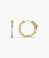 Elegant and timeless, these round hoop Earrings feature brilliant white stones in a polished bezel setting. Available in yellow, rose, or white gold, they are the perfect everyday essential — versatile enough for both casual and formal looks.